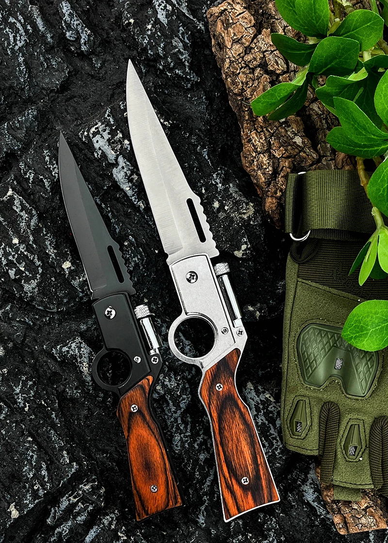 Outdoor Survival All-Around Folding Knife Portable Tactical Pocket EDC Multifunctional Lighting for Camping Hiking Wooden